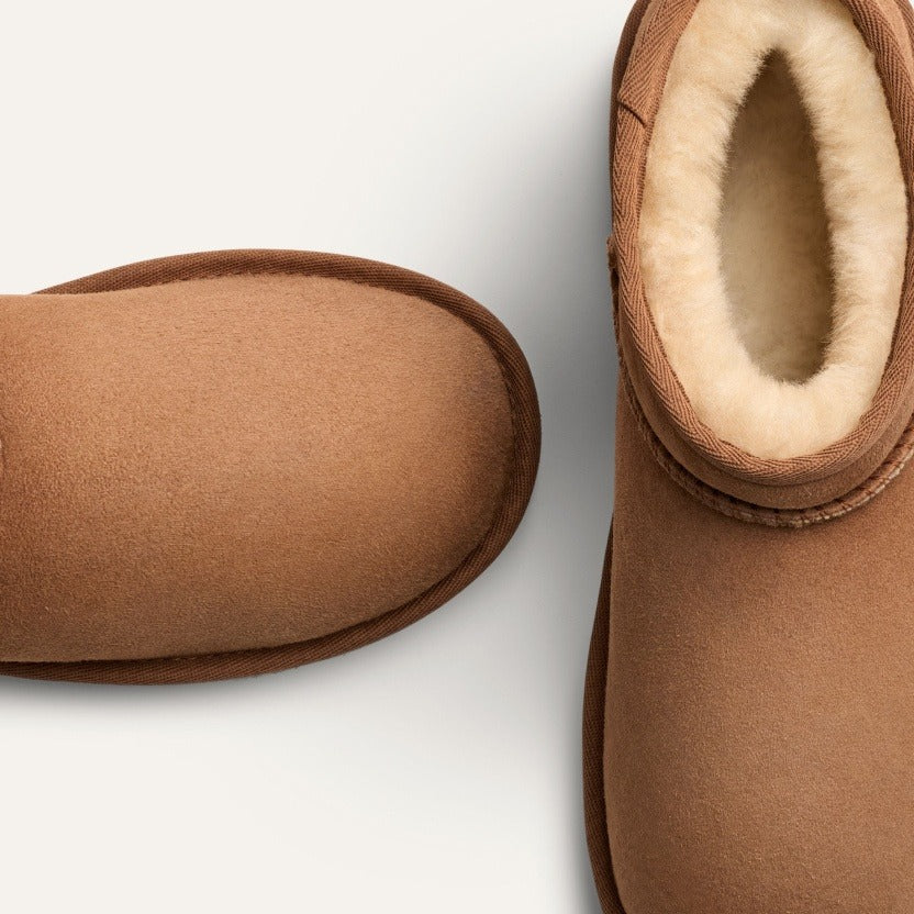 L’UGG Ultra Mini conserve l’esprit du modèle original, avec une coupe plus basse et moderne, une tige en daim souple et une doublure en peau de mouton moelleuse pour unconfort inégalé.
